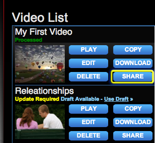 A blue processing time bar will appear as the movie is being shared, then you will receive a success message that looks like this: