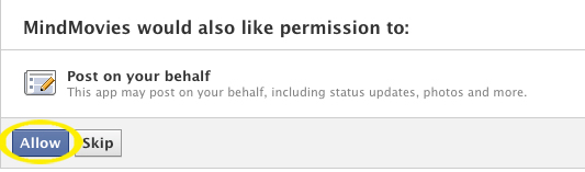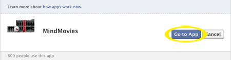 A new page will open in Facebook that asks you to go to the Mind Movies App, meaning this will allow your Mind Movies
