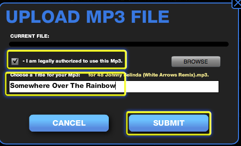 A new window will open where you will navigate to find the music mp3 file that you would like to upload to your Music Library