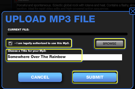 Scroll to find the song that you would like to select to be uploaded into your Mind Movies Music Library